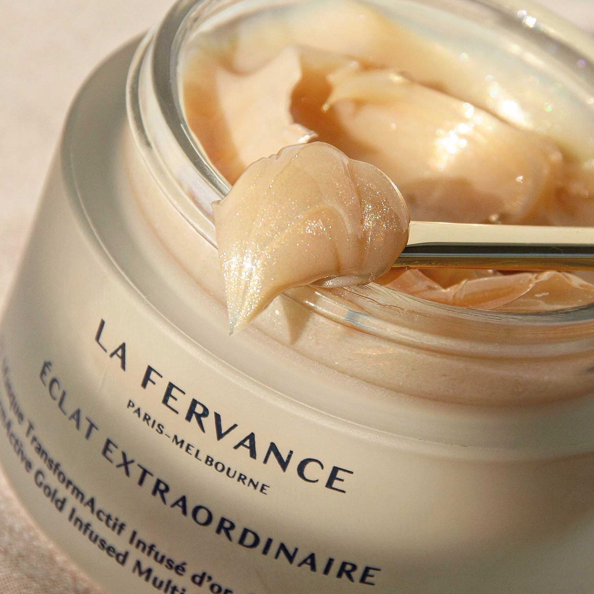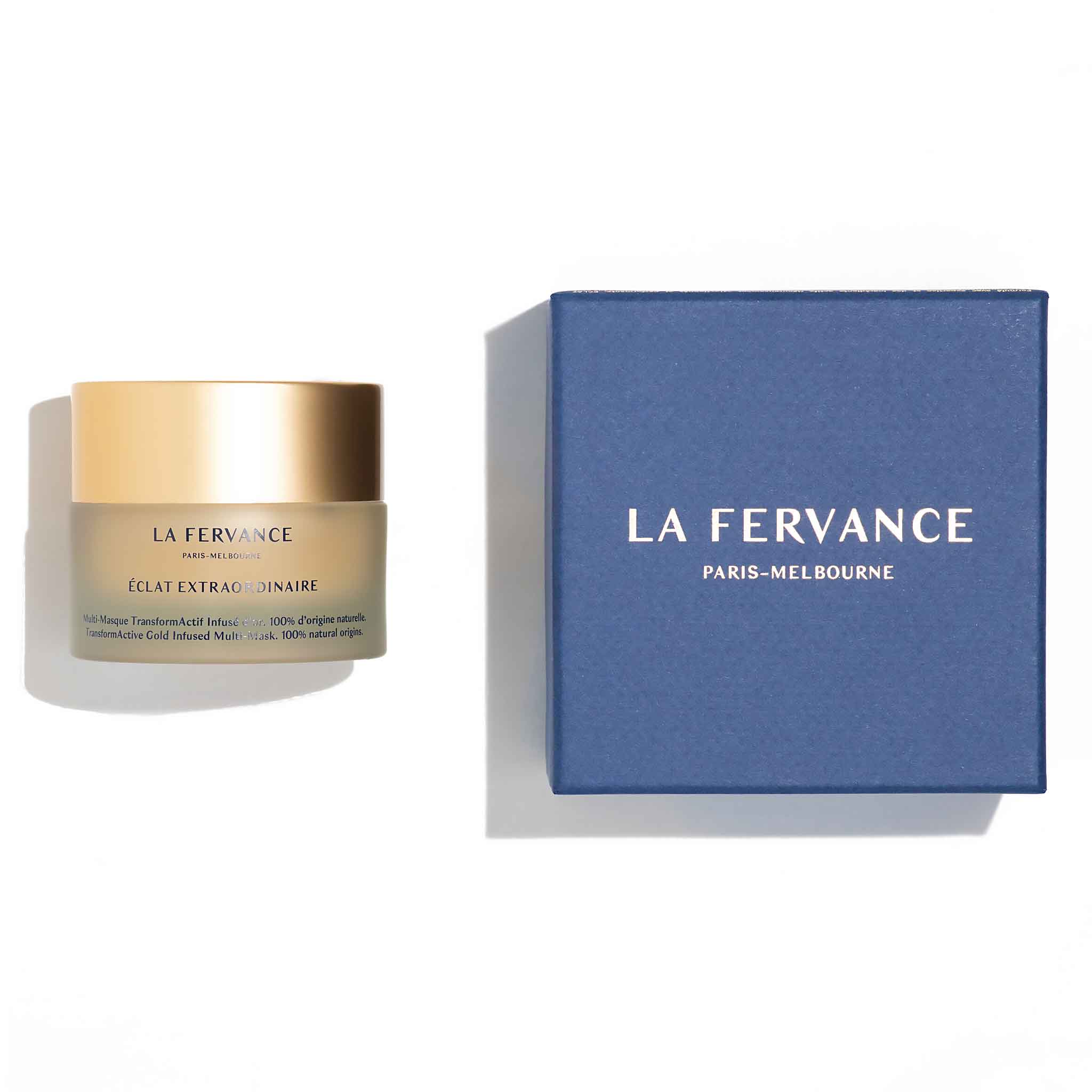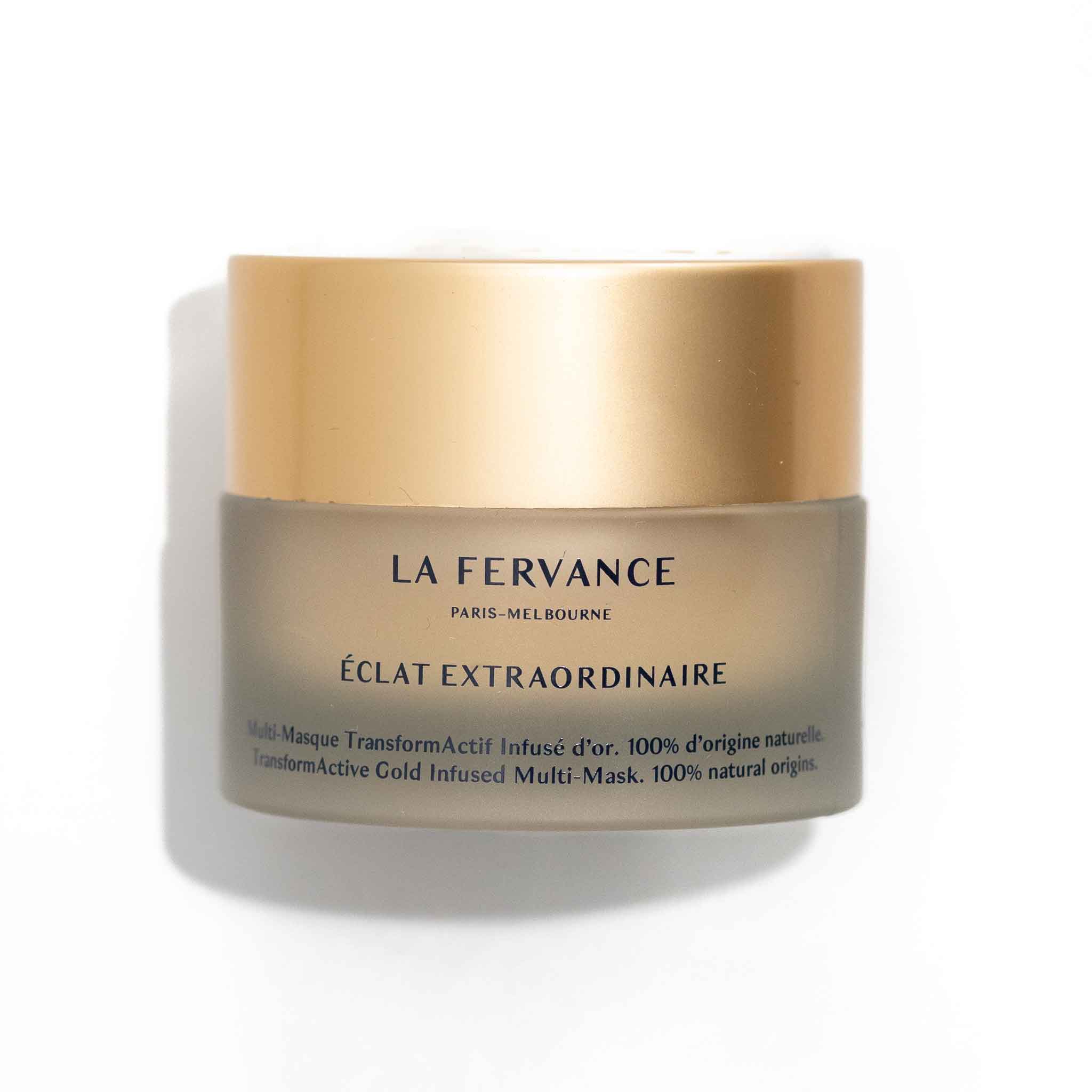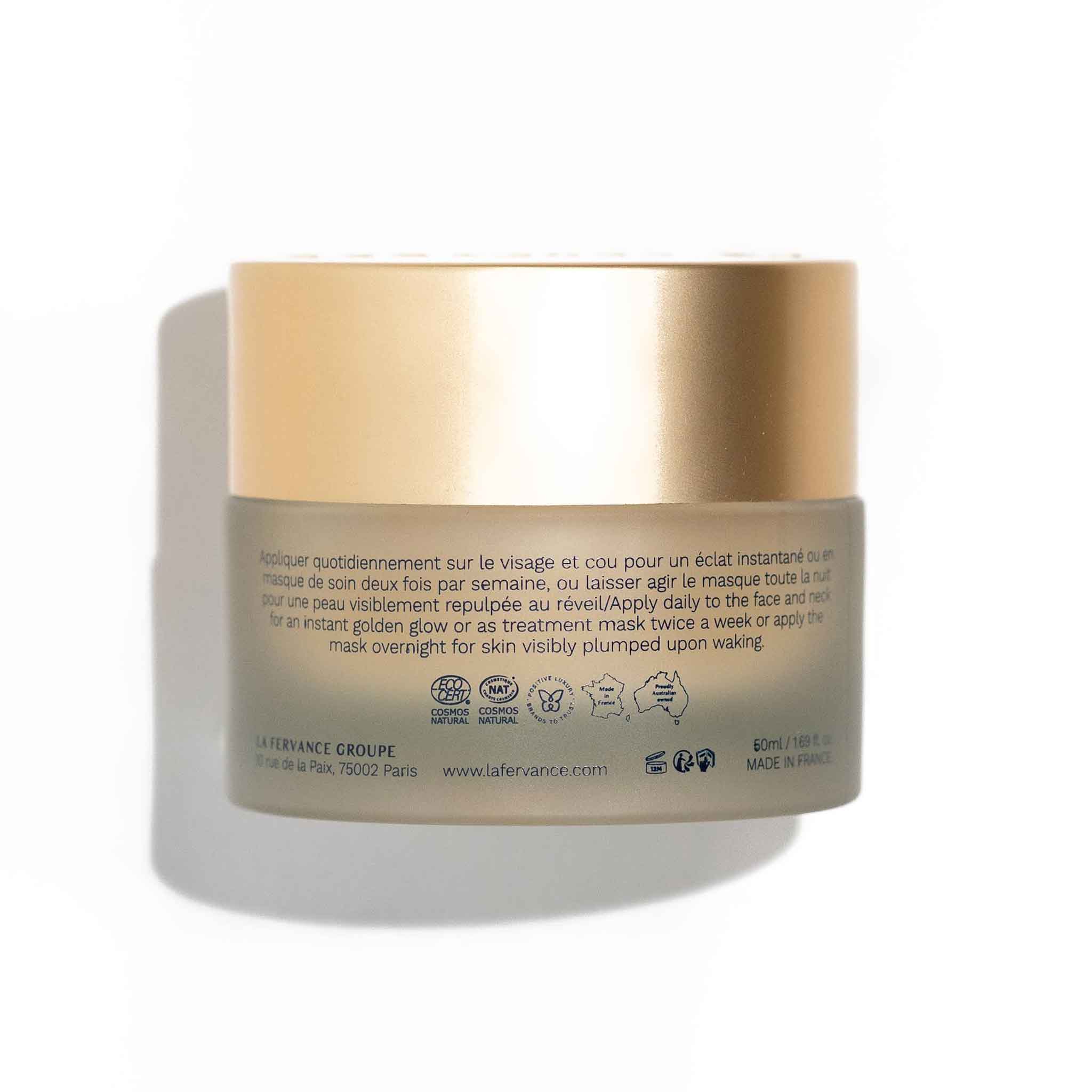 Designed to give an instant golden glow, Éclat Extraordinaire Gold Infused Multi-Mask is an exquisite beauty balm that visibly transforms the appearance of the skin. It dramatically improves hydration while visibly reducing wrinkles and restoring elasticity and firmness. Your skin will experience a lifting effect while also appearing more soothed and toned. Expertly formulated by France’s leading skin care scientists, dermatologically tested, and Certified COSMOS by Ecocert. Boasting 67% active ingredients and perfectly balanced with double hyaluronic acid from 100% pure HA sources, a bio-active complex of Australian mountain plant extracts, mimosa and jojoba extracts, baobab lifting gel, Buriti oil, Kakadu plum extract, vitamin E, 23K gold, pearly pigments and pure seawater from the French Breton coasts. The ultimate ethical clean beauty formulation, Éclat Extraordinaire streamlines the daily ritual with equally effective multiple uses. Use it daily for an instant glow, nightly or weekly as a treatment mask, or try it with massage to enhance results. Its high silky sugar-esters base activates upon contact to visibly transform the appearance of the skin, turning to oil and a milky white emulsion with water.SIZE: 50 ml (1.69 fl oz) Jar